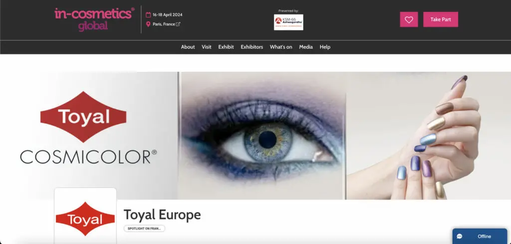 More information on : https://www.in-cosmetics.com/global/en-gb/exhibitor-details.toyal%20europe.org-efbc2a9f-c6fe-4320-9ce2-f836d33eb47d.html#/